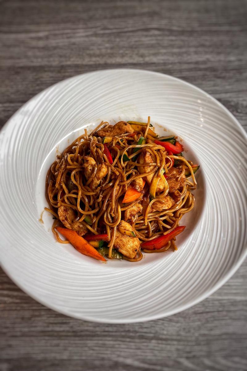 47. Stekte eggnudler med kylling